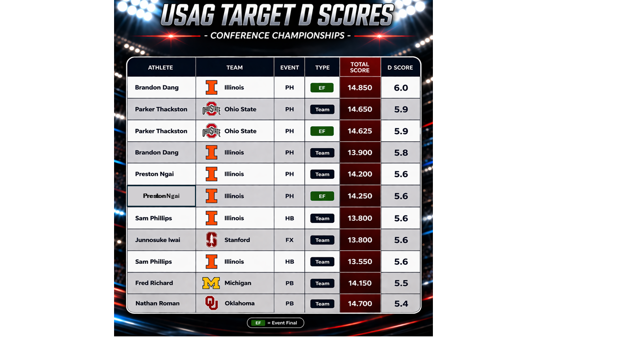 Men’s NCAA gymnastics 2026 Conference Championship Snapshots