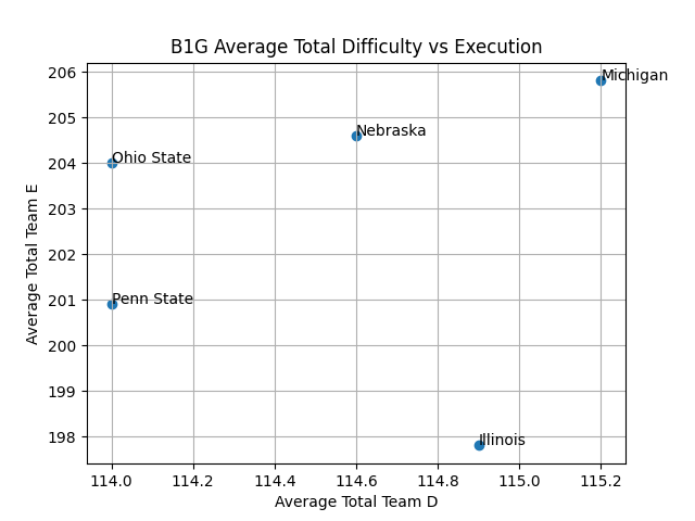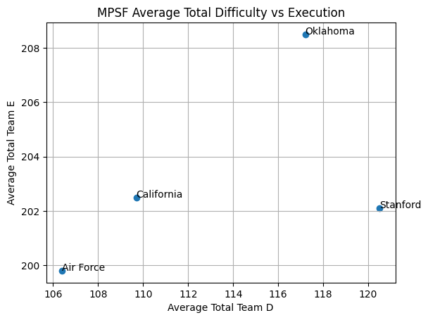 Using all scores over the whole season. Teams may come into the meet with higher than their average D score.