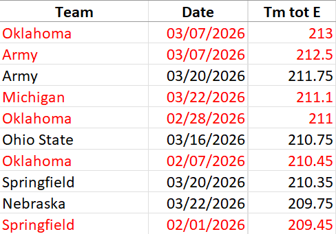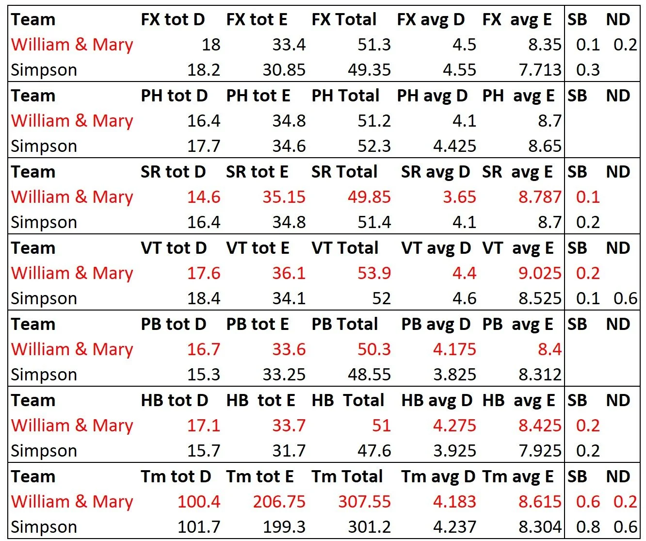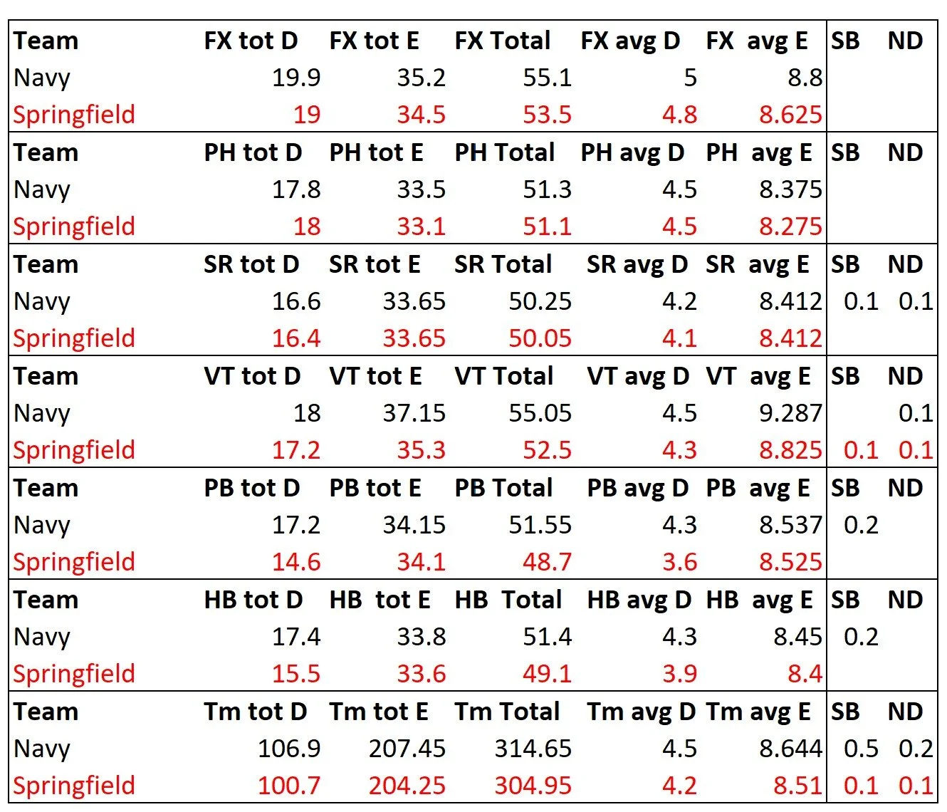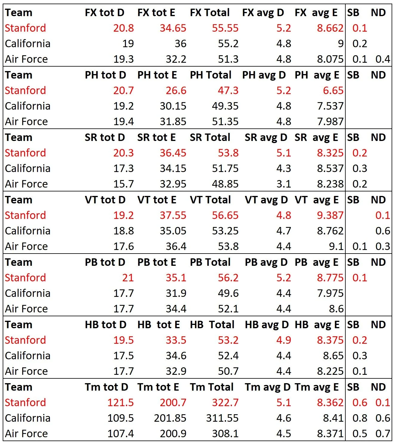 Army is up there with the big boys. They got the highest road total E score of the season. I’m not good enough with the FIG code to have ever figured this out on my own. This gives teams that can’t pile on the difficulty a way to shine, which most people would never see without this information.