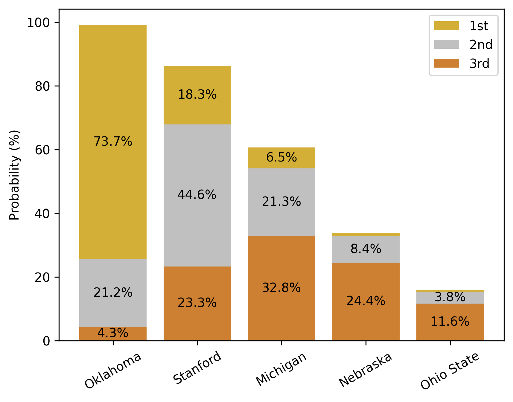 In which I use a method used in the development of the H bomb (Monte Carlo Simulations) to figure out what everyone already knows - the race is between Oklahoma, Stanford, Michigan, and, possibly, spoiler Nebraska.